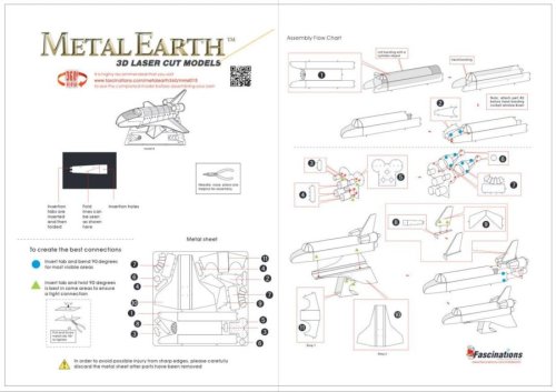 Jednotlivé díly vyjměte z kovových plátků, v případě potřeby použijte malé štípací nůžky (nejsou součástí). Dílky se spojují k sobě pomocí zámků tvořených úchytem (zobáčkem) a otvorem. Zobáček ohněte pomocí malých tenkých kleští (nejsou součástí) a postupně spojte všechny zámky až vznikne velmi realistický mistrovský kousek!