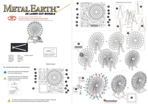 Jednotlivé díly vyjměte z kovových plátků, v případě potřeby použijte malé štípací nůžky (nejsou součástí). Dílky se spojují k sobě pomocí zámků tvořených úchytem (zobáčkem) a otvorem. Zobáček ohněte pomocí malých tenkých kleští (nejsou součástí) a postupně spojte všechny zámky až vznikne velmi realistický mistrovský kousek!