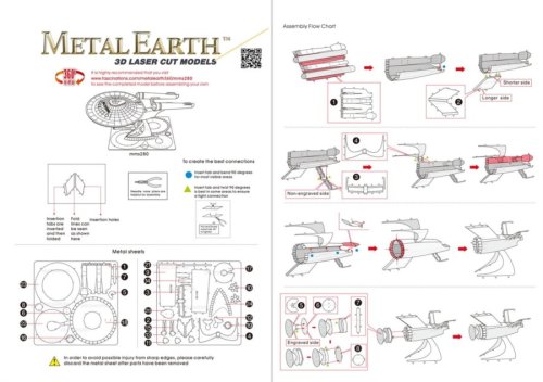 Jednotlivé díly vyjměte z kovových plátků, v případě potřeby použijte malé štípací nůžky (nejsou součástí). Dílky se spojují k sobě pomocí zámků tvořených úchytem (zobáčkem) a otvorem. Zobáček ohněte pomocí malých tenkých kleští (nejsou součástí) a postupně spojte všechny zámky až vznikne velmi realistický mistrovský kousek!