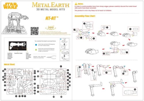 Jednotlivé díly vyjměte z kovových plátků, v případě potřeby použijte malé štípací nůžky (nejsou součástí). Dílky se spojují k sobě pomocí zámků tvořených úchytem (zobáčkem) a otvorem. Zobáček ohněte pomocí malých tenkých kleští (nejsou součástí) a postupně spojte všechny zámky až vznikne velmi realistický mistrovský kousek!