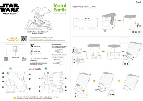 Jednotlivé díly vyjměte z kovových plátků, v případě potřeby použijte malé štípací nůžky (nejsou součástí). Dílky se spojují k sobě pomocí zámků tvořených úchytem (zobáčkem) a otvorem. Zobáček ohněte pomocí malých tenkých kleští (nejsou součástí) a postupně spojte všechny zámky až vznikne velmi realistický mistrovský kousek!