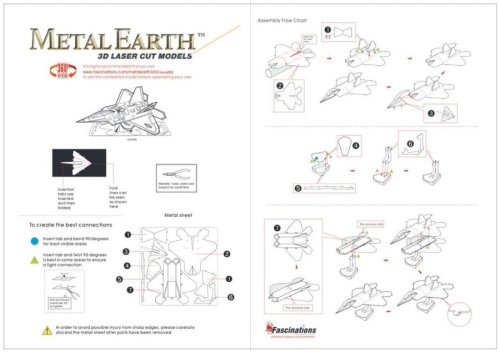 Jednotlivé díly vyjměte z kovových plátků, v případě potřeby použijte malé štípací nůžky (nejsou součástí). Dílky se spojují k sobě pomocí zámků tvořených úchytem (zobáčkem) a otvorem. Zobáček ohněte pomocí malých tenkých kleští (nejsou součástí) a postupně spojte všechny zámky až vznikne velmi realistický mistrovský kousek!