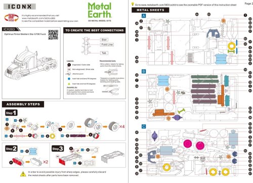 Jednotlivé díly vyjměte z kovových plátků, v případě potřeby použijte malé štípací nůžky (nejsou součástí). Dílky se spojují k sobě pomocí zámků tvořených úchytem (zobáčkem) a otvorem. Zobáček ohněte pomocí malých tenkých kleští (nejsou součástí) a postupně spojte všechny zámky až vznikne velmi realistický mistrovský kousek!
