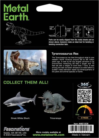 Sada pro vytvoření fascinujícího kovového 3D modelu . Stavba puzzle METAL EARTH vyžaduje trpělivost a šikovné ruce. Výsledek práce však plně vyváží vynaložené úsilí. Miniaturní repliky jsou působivou a poutavou dekorací. Z čtvercových plátků oceli Vám pod rukama vyrostou detailně propracované, fascinující modely. Autentický vzhled 3D puzzle METAL EARTH je dosažen díky detailnímu laserovému gravírování . Nářadí není součástí balení. PRACOVNÍ POSTUP: Jednotlivé díly vyjměte z kovových plátků, v případě potřeby použijte malé štípací nůžky (nejsou součástí). Dílky se spojují k sobě pomocí zámků tvořených úchytem (zobáčkem) a otvorem. Zobáček ohněte pomocí malých tenkých kleští (nejsou součástí) a postupně spojte všechny zámky až vznikne velmi realistický mistrovský kousek!