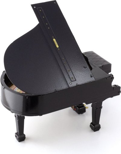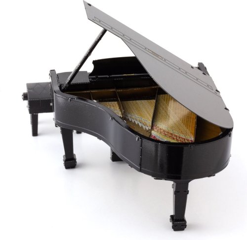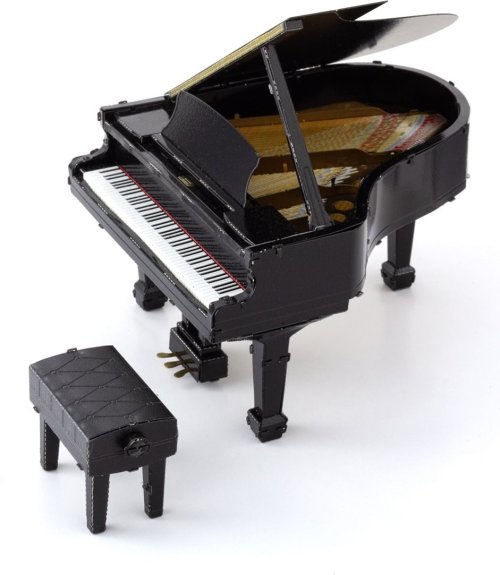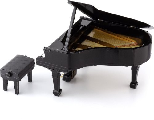 Koncertní klavír je hudební nástroj ovládaný klaviaturou, která se skládá z 52 bílých kláves a 36 černých kláves, pokrývajících rozsah více než sedmi oktáv. Koncertní klavír je navržen tak, že jeho rám a struny jsou paralelní s podlahou, přičemž struny směřují od klaviatury. Klavír také obsahuje 3 pedály, které se používají k různým změnám zvuku nástroje. Sada pro vytvoření fascinujícího kovového 3D modelu . Stavba puzzle METAL EARTH vyžaduje trpělivost a šikovné ruce. Výsledek práce však plně vyváží vynaložené úsilí. Miniaturní repliky jsou působivou a poutavou dekorací. Z čtvercových plátků oceli Vám pod rukama vyrostou detailně propracované, fascinující modely. Autentický vzhled 3D puzzle METAL EARTH je dosažen díky detailnímu laserovému gravírování . Nářadí není součástí balení. PRACOVNÍ POSTUP: Jednotlivé díly vyjměte z kovových plátků, v případě potřeby použijte malé štípací nůžky (nejsou součástí). Dílky se spojují k sobě pomocí zámků tvořených úchytem (zobáčkem) a otvorem. Zobáček ohněte pomocí malých tenkých kleští (nejsou součástí) a postupně spojte všechny zámky až vznikne velmi realistický mistrovský kousek! Rozměr složeného puzzle cca 7,3 x 6,2 x 7,7 cm