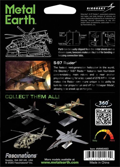 Sada pro vytvoření fascinujícího kovového 3D modelu . Stavba puzzle METAL EARTH vyžaduje trpělivost a šikovné ruce. Výsledek práce však plně vyváží vynaložené úsilí. Miniaturní repliky jsou působivou a poutavou dekorací. Z čtvercových plátků oceli Vám pod rukama vyrostou detailně propracované, fascinující modely. Autentický vzhled 3D puzzle METAL EARTH je dosažen díky detailnímu laserovému gravírování . Nářadí není součástí balení. PRACOVNÍ POSTUP: Jednotlivé díly vyjměte z kovových plátků, v případě potřeby použijte malé štípací nůžky (nejsou součástí). Dílky se spojují k sobě pomocí zámků tvořených úchytem (zobáčkem) a otvorem. Zobáček ohněte pomocí malých tenkých kleští (nejsou součástí) a postupně spojte všechny zámky až vznikne velmi realistický mistrovský kousek!