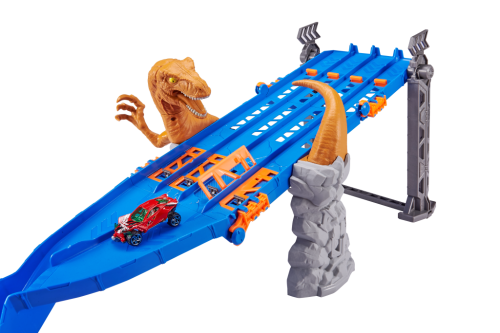Vstupte do arény, kde přežije pouze nejlepší! Dráha Raptor Attack přináší čtyřnásobnou dávku adrenalinu s útočícím raptorem a skrytými pastmi. Ideální dárek pro všechny milovníky rychlosti a akce!