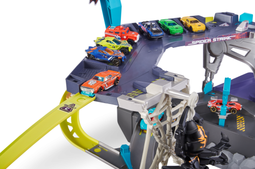 Vstupte do světa Metal Machines, kde nebezpečí číhá na každém rohu! Pavoučí garáž Spider Strike nabízí hodiny vzrušující zábavy a nekonečné možnosti hraní. Ideální dárek pro všechny milovníky autíček a akce!