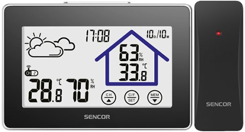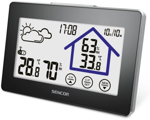 Ikona předpovědi počasí ( slunečno, mírně oblačno, oblačno, déšť, sníh ) Vnitřní měření teploty a vlhkosti Venkovní měření teploty a vlhkosti Max. / Min. záznamy v paměti Rozsah měření vnitřní teploty: 0°C až +50°C Rozsah měření venkovní teploty: -20°C až +60°C Rozsah měření vlhkosti 20% až 95% RV Zobrazení stupnice teploty °C / °F Digitální čas a datum 12 / 24 hodinový formát Dotyková tlačítka na obrazovce LCD displej s krátkodobým bílým podsvícením Indikátor vybité baterie Umístění na stůl nebo pověšení na zeď Možnost připojení až tří senzorů 1 senzor součástí balení ( SWS TH2850-2999-3851-5150 ) Přenos na vzdálenost mezi hlavní jednotkou a snímačem - až do vzdálenosti 50 m ( v otevřeném prostoru ) Frekvence vysílání senzoru: 433,92 MHz Napájení: 3 x 1,5 V typ AAA ( baterie nejsou součástí balení ) Napájení senzoru: 2 x 1,5 V typ AA ( baterie nejsou součástí balení ) Rozměry hlavní jednotky: ( š / v / h ) 142 x 98 x 22 mm Hmotnost hlavníjednotky: 160 g Rozměry bezdrátového snímače: ( š / v / h ) 39 x 100 x 23 mm Hmotnost bezdrátového snímače: 33 g