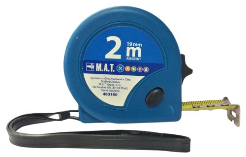 Stáčecí metr v odolném plastovém pouzdře, s pojistkou pro zablokování a aretaci pásma.