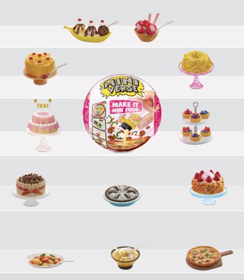 Mini hračky…VELKÁ překvapení! Udělej to! Naservíruj to! A máme tady další část série Mini večeří…. Rozbal své oblíbené jídlo ve formě mini replik. Je tak miniaturní, ale i přesto s neuvěřitelně realistickými detaily! Jídlo nebo nápoj připravíš z ingrediencí ve tvém balíčku, pak ho necháš alespoň 5 minut na přímém slunci vytvrdnout nebo na něj zasvítíš UV lampičkou a můžeš servírovat! Připrav si třeba jahodový nebo čokoládový koláč nebo pizzu.