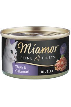 Konzerva s filetami z tuňáka a kalamáry, doplňkové krmivo pro dospělé kočky.