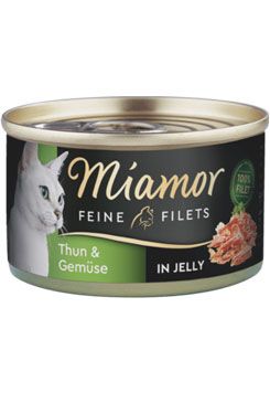 Konzerva s filetami z tuňáka a zeleninou, doplňkové krmivo pro dospělé kočky.