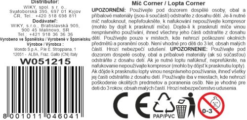 Míc Corner nenafouknutý. Velikost 22cm. 3 varianty- modrá, bílá, červená