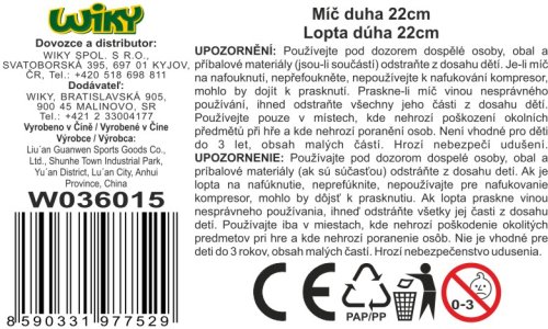 Míč nafukovací - duha. Velikost 22 cm. 3 barevné varianty.