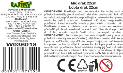 Míč gumový nenafouknutý drak 22 cm. 3 barevné varianty - modrý, červený, růžový.