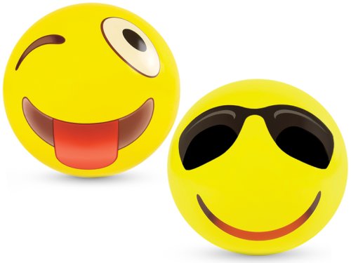 Nafukovací míč v designu smajlíka s brýlemi nebo vyplazeným jazykem vykouzlí úsměv na tváři. Užijte si s rodinou ve vodě spoustu zábavy. Průměr míče je 50 cm. Míč je vhodný již od 24 měsíců.