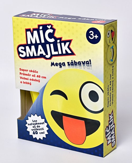 Velký nafukovací míč z pevného materiálu. Průměr 40 cm. Nafouknutí pomocí jehly. 2 druhy (2 obličeje).