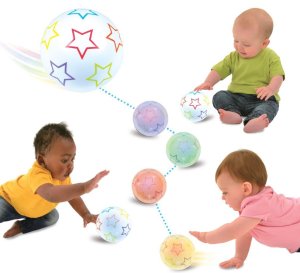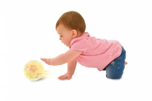 Motorizovaný míček, který mění barvy a směr pohybu. Zaujme pozornost dětí, které se za ním mohou plazit a následovat ho.