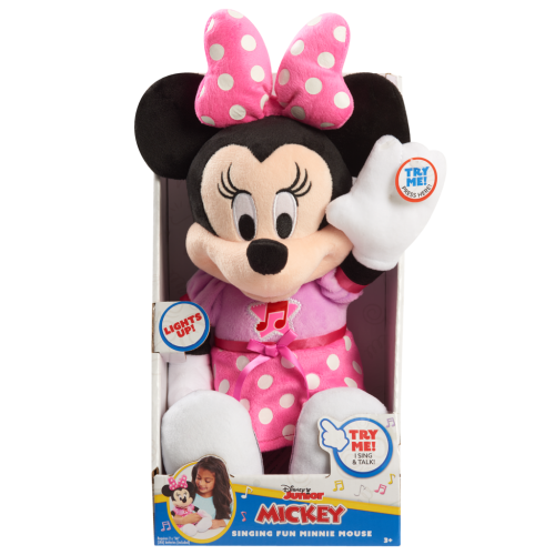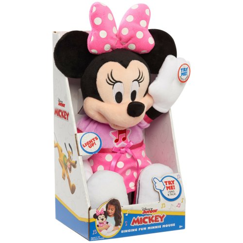 Zábavný plyšák Minnie Mouse umožní dětem zpívat spolu s myškou Minnie celé hodiny! Stiskněte Minnie Mouse ruku a zazpívejte si s ní píseň z Minnie's Bow-Toons! Minnie Mouse je vysoká 30 cm, má na sobě rozkošný růžový outfit! Tento plyšový zábavný kamarád je vyroben z měkkých materiálů a je ideální pro každého fanouška myšky Minnie. Malí fanoušci budou rádi, když si s sebou plyšový plyšák Minnie Mouse vezmou, ať jdou kamkoli! Vyžaduje 2 x AA baterie (součástí balení). Věk 3+