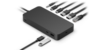 Navrženo pro: *Surface Laptop 5, 6, 7. edice (Copilot+ PC) *Surface Laptop Studio, Laptop Studio 2 *Surface Pro 8, Pro 9, Pro 10, Pro 11. edice (Copilot+ PC) *Zařízení s Windows 11 a porty Thunderbolt 4 a USB 4 Konektor hostitele: USB-C s kontrolkou Porty a možnosti připojení: *Napájecí zdroj 165 W (průchozí až 96 W) *Kabel ThunderboltFootnote 4 s indikátorem nabíjení LED (80 cm) *1 přední USB-A (USB 3.1 Gen 2, 7,5 W) *1 přední USB-CFootnote (USB 4 ThunderboltFootnote 4, s aktivní podporou videodispleje, 15 W) *2 zadní USB-A (USB 3.1 Gen 2, 7,5 W) *2 zadní USB-CFootnote (USB 4 ThunderboltFootnote 4, s aktivní podporou videodispleje, 15 W) *1 konektor sítě ethernet (2,5 Gbit/s) *3,5mm zvukový konektor *Podpora bezpečnostního zámku (kompatibilní se zámkem Kensington) *Šroubovací matice pro montáž na stůl Rozměry: 150 mm × 75 mm × 21,3 mm Hmotnost: 410 g