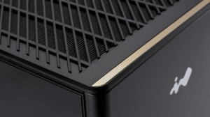 A3 má dokonale čistý přední panel zdobený stříbrným logem InWin a broušeným zlatým hliníkovým proužkem.