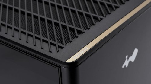 A5 má dokonale čistý přední panel zdobený stříbrným logem InWin a broušeným zlatým hliníkovým proužkem.