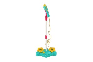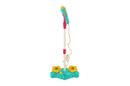 Skvělá zábava pro malé muzikanty. Tento úžasný plastový mikrofon umožní malým muzikantům uspořádat vlastní koncert. Možnost nastavení hlasitosti. Mikrofon se zvukem a světlem. Budete se cítít jako popová hvězda. Skvělý pódiový mikrofon s funkcemi. Možnost nastavení výšky mikrofonu podle výšky dítěte. Baterie 4 x AA nejsou součástí balení. Sestavení: 1.) sestavení tripodu (podstavce): zasuňte stabilizační tyčky do podstavce 2.) nasaďte stetoskopickou tyč (tyč, která drží mikrofon) na podstavec 3.) nastave výšku, kterou potřebujete 4.) připevněte mikrofon Nastavitelná výška mikrofonu je 78 - 110 cm. Kabel pro připojení MP3/mobilního telefonu není součástí balení. Rozměry balení 38 x 26 x 8 cm. Vhodné pro děti od 3 let.