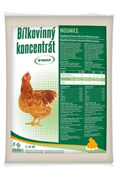 Kvalitní bílkovinný koncentrát pro nosnice, který slouží k doplňování krmných dávek. Obsahuje vysoký obsah dusíkatých látek a esenciálních aminokyselin z vysoce kvalitního sójového extrahovaného šrotu. Minerální krmivo zajistí dostatečný obsah Ca, P, Na a dalších důležitých prvků pro kvalitní výživu nosnic v době snášky.