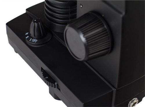Mikroskop je vybaven monokulární hlavicí a revolverovým nosičem se třemi objektivy. Objektivy nabízejí tři pevné hodnoty zvětšení 300x, 600x a 1200x. Pozorování lze provádět pod přirozeným světlem nebo s pomocí zabudovaného spodního osvětlení.