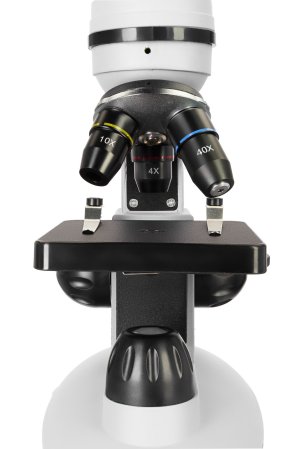 Obsahuje achromatické objektivy a širokoúhlý okulár. Všechny čočky vyrobené z optického skla poskytují ostrý kontrastní obraz a objektiv se 40x zvětšením využívá ochranný pružinový rám.