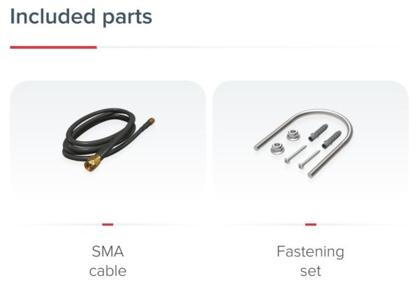 Všesměrová LoRa anténa se ziskem 6,5 dBi. Pracuje na frekvenci 862–876 MHz a disponuje odolností proti vodě dle IP66. Součástí je 1 m SMA kabel s vylepšenou odolností a sada pro uchycení antény na stožár o průměru 25-50 mm.