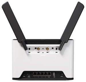 Domácí vysokorychlostní LTE ax router 6. generace pracující v pásmech 2,4 a 5 GHz + LTE (kategorie 6). Podporuje standard 802.11a/b/g/n/ac/ax a TR-069 pro vzdálenou správu. Dvě externí antény se ziskem 2 a 4 dBi zajišťují stabilní bezdrátové připojení a optimální pokrytí. MikroTik Chateau LTE6 ax disponuje čtyřmi GbE porty, jedním 2.5G portem, jedním USB 2.0 portem a microSIM slotem.