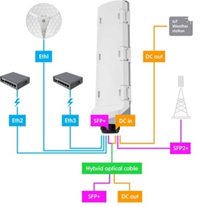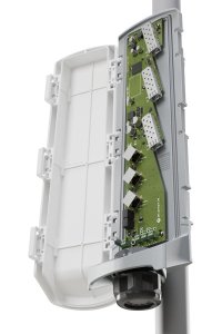 MikroTik venkovní PoE switch GPERx6 robustní venkovní switch pro přenos dat a napájení hybridním kabelem na velké vzdálenosti, který omezuje změť kabelů a zjednodušuje instalaci