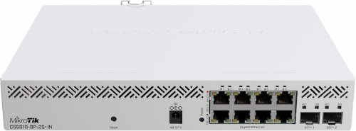 MikroTik Cloud Smart Switch CSS610-8P-2S+IN je managovatelný, 8-portový Gigabitový PoE Switch s dvěma SFP+ sloty (zpětně kompatibilní i se SFP moduly), bez ventilátoru a kitem pro přichycení do 19" racku. Switch disponuje 140W PoE budgetem pro napájení až 8 zařízení pomocí 802.3af/at standardů s maximální zátěží 30 W/port.