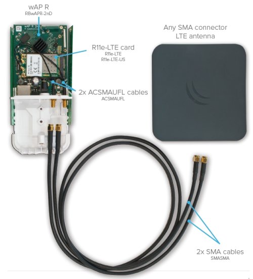 Mikrotik metrový redukční kabel osazený konektory SMA male pro připojení externí antény k LTE jednotkám.