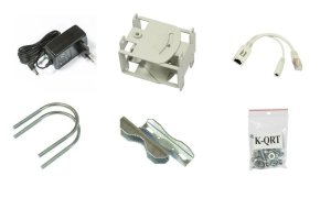 Included • QRT wireless device, precision mounting bracket, U bolts, pole clamp, screw kit, 24V 0.8A power adapter, Gigabit PoE injector