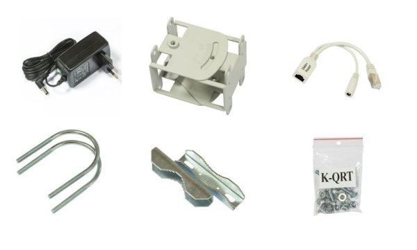 Součástí dodávky: • 1x outdoor jednotka RBSXT • 1x montážní příprava k uchycení jednotky na stožár/konzoli • 1x napájecí zdroj • 1x GPOE injektor