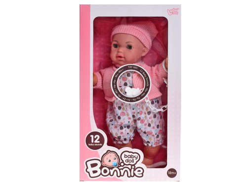 Miminko 30 cm mrkací měkké tělo na baterie 12 zvuků s dudlíkem