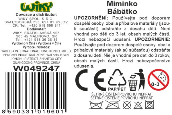 Miminko. Velikost 10x7x30 cm.