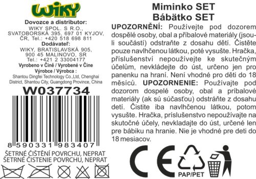 Miminko. Velikost 30cm. Příslušenství: dudlík, chrastítko, miska s příborem.