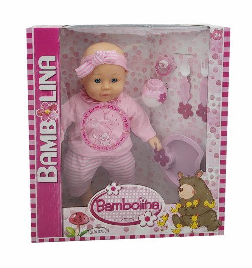 Roztomilá panenka Bambolina o velikosti 38 cm se stane skvělou kamarádkou pro každé dítě! Má měkké tělíčko vyplněné polyesterem a vinylovou hlavu, ruce i nohy. Dokáže říct 50 českých slov a přinese spoustu radosti při hře. Součástí balení jsou doplňky na krmení a dudlík, díky kterým se péče o panenku stane ještě realističtější.