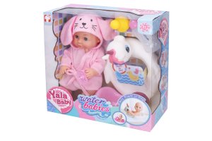Miminko s kruhem. Velikost 27 cm. Obsah balení - miminko, župan, dudlík, nočník, kruh pro miminko, lahvička, kačenka.
