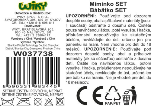 Miminko s příslušenstvím. Velikost 25 cm. Balení obsahuje miminko, dudlík a chrastítko.