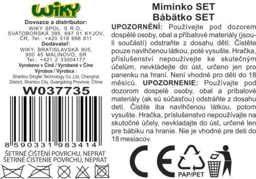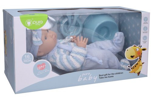 Miminko v overalu modré. Velikost 40 cm. Obsahuje: miminko, nočník, miska, příbor, dudlík.