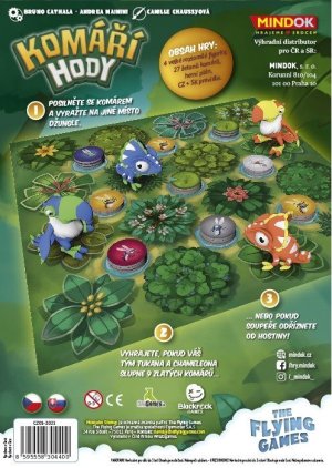 V temné džungli, v té zrádné džungli, tam pták komáry jíííí… Ve hře Komáří hody se každý ze dvou hráčů chopí jednoho loveckého týmu, sestávajícího z tukana a chameleona, a vydají se nachytat si z jezírek lahodné komáry. Ti největší fajnšmekři si pochutnají na vyhlášené delikatese: zlatých komárech. Obsah balení: