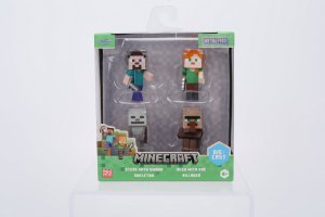 Sada kovových sběratelských figurek Minecraft, výška 6 cm. Steve s mečem, Alex se sekerou, Skeleton, Villager.