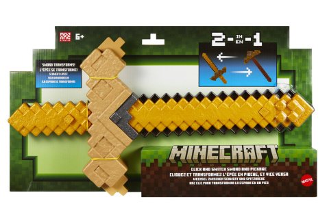 Fanoušci si mohou přenést dobrodružství z Minecraftu do skutečného světa s touto hračkou 2v1 - stiskem tlačítka se promění z krumpáče na meč a snadno se vrátí zpět na krumpáč. Hračka inspirovaná filmem Minecraft je ergonomicky navržena tak, aby dobře padla do dětské ruky, a umožňuje tak znovu prožít oblíbené herní momenty nebo vymýšlet vzrušující vlastní příběhy. Doporučený věk 6+