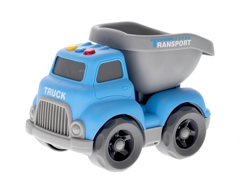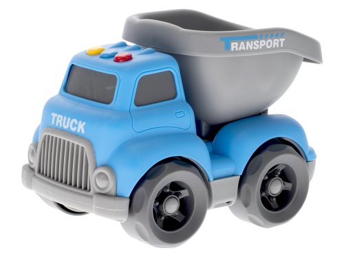 Auto sklápěčka o velikosti 16 cm pro nejmenší děti od 18 měsíců. Auto je vybaveno světelnými i zvukovými signály. Autíčko je laděno do šedo-modré barvy.