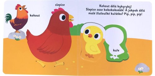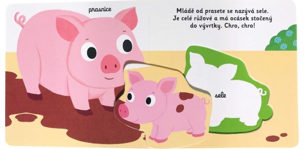 Sele se stočeným ocáskem nebo skrvnité telátko po mamince… slož a zase rozlož. Uč se se zvířátky. Tato knížka obsahuje velké kusy puzzle a je zaměřená na mláďátka z farmy. Roztomilé ilustrace a krátké popisky jsou ideální jak na hraní, tak i objevování a dozvídání se nových informací o obyvatelích každé správné farmy. Velké a především pevné kusy puzzle jsou vhodné pro malé dětské ruce a zaručí, že přežijí nejedno poutavé hraní. Toto leporelo je vhodné pro nejmenší čtenáře, protože procvičí jak jemnou motoriku, tak napomůže s rozvojem schopností skládat a přiřazovat správné objekty dohromady. Knížka s prvky Montessori. České vydání publikace nakladatelství Nathan. Počet stran: 8 Vazba: Leporelo Rok vydání: 2020 ISBN: 978-80-256-2772-3 Ilustrační video